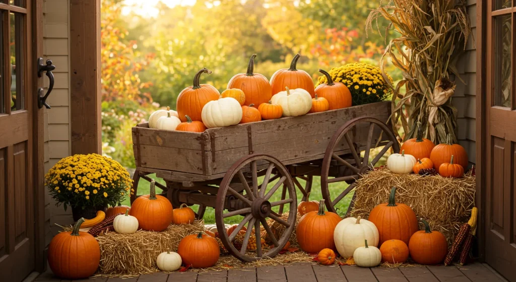 Pro Tip: If you are using a real vintage wagon, line it with a plastic sheet before filling it with heavy pumpkins to protect the wagon bed from scratches and moisture.