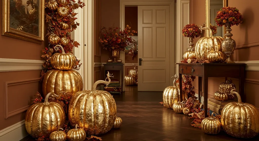 Add a touch of Midas-like glamour to your decor with gold leaf. Applying it to pumpkins creates a stunningly chic and metallic accent.