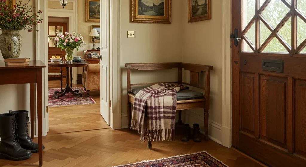 For the ultimate in cozy, chic texture, drape a faux sheepskin rug over an entryway bench or the back of a chair. It adds softness and a touch of Scandinavian hygge.