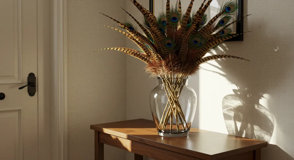 For a touch of rustic, natural elegance, place a handful of long pheasant feathers in a simple ceramic vase. Their intricate patterns and iridescence are stunning.