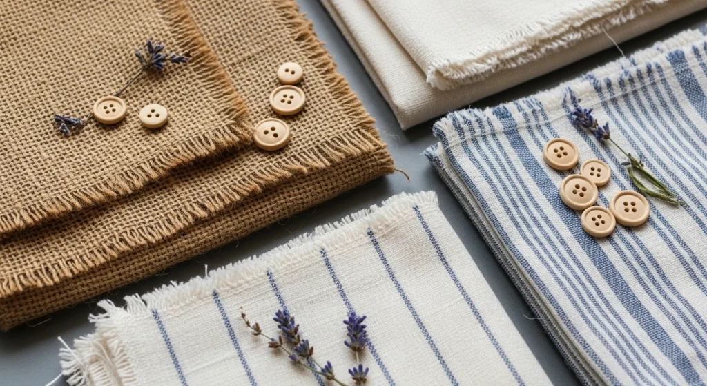 Window treatments in this style should prioritize texture over intricate patterns. Burlap is a premier choice for its organic, coarse weave.