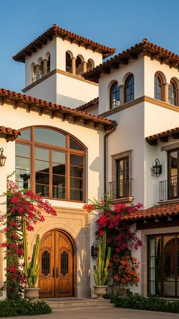 The landscape design is just as important as the architecture when creating a timeless hacienda look. Bougainvillea is the signature plant of this style, known for its brilliant pink, purple, and red bracts. This hardy vine thrives in warm climates and can be trained to climb walls, fences, and balconies.