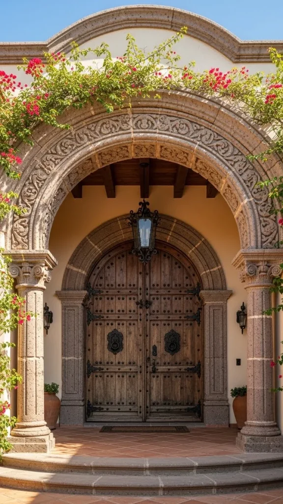 Arches are a central theme in Mexican hacienda design, inspired by the grand cathedrals and estates of Europe. A grand arched entryway creates an immediate sense of arrival and sets a tone of elegance for the entire property. These structures often lead into a sheltered porch or directly into a central courtyard area.