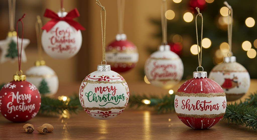 - Paint wooden ornament blanks with a base color before adding personalized details with paint pens or vinyl lettering.