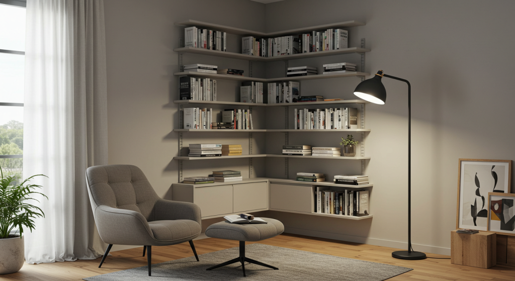 Every home has an underutilized corner that can be turned into a cozy reading nook. Add floating shelves or a corner bookshelf to make the most of the space. Pair it with a comfortable chair and a floor lamp for a perfect reading retreat.