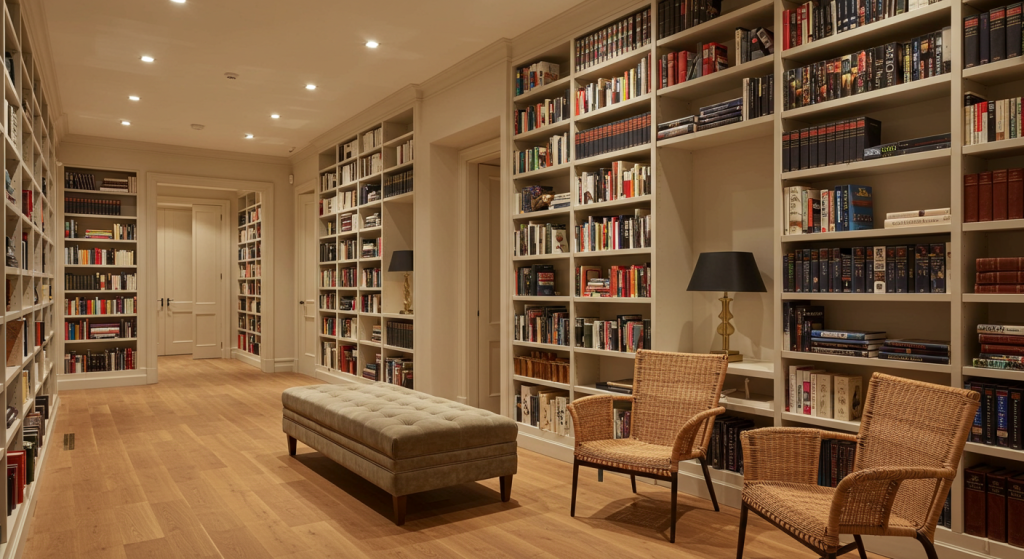 Incorporating a library into your home does not require a dedicated room. With smart planning, you can add bookshelves and reading spaces to almost any area. Whether it is a hallway, a living room, or even a closet, creative solutions can turn any space into a functional and stylish library. Choose the option that best fits your home and enjoy a beautifully integrated book collection.