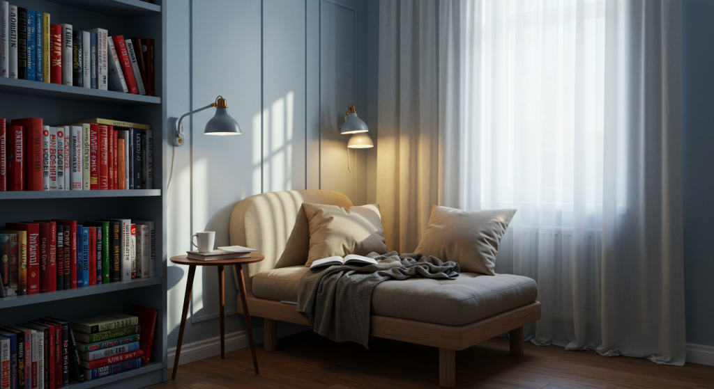 Second, and most crucial, is task lighting. This is the direct light you need for reading to prevent eye strain. This could be a floor lamp next to your chair, a wall sconce, or a clip-on book light.