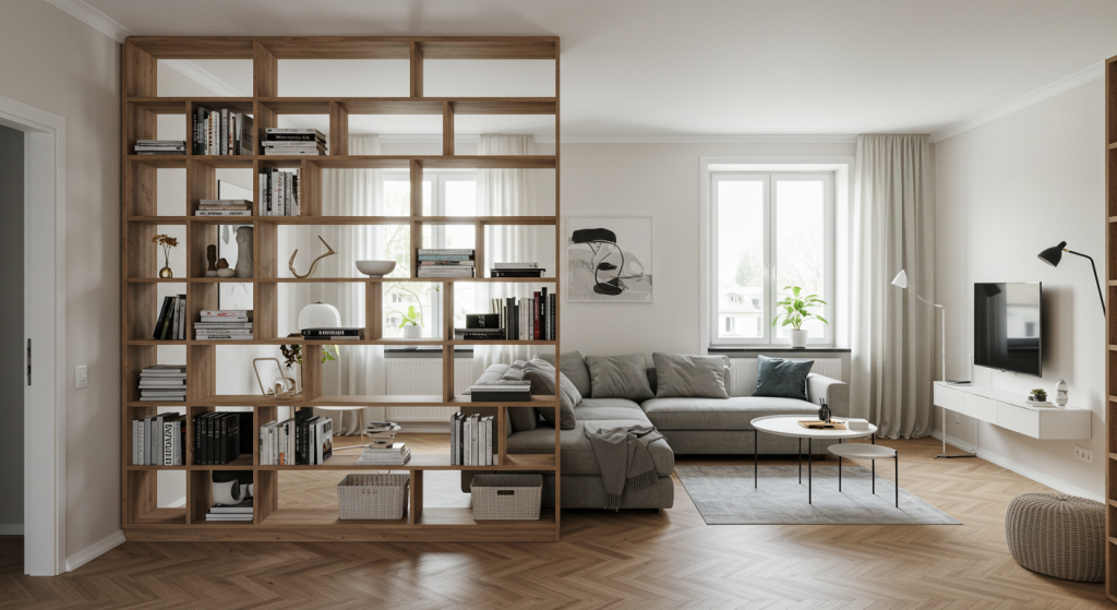 9. Use a Room Divider with Bookshelves