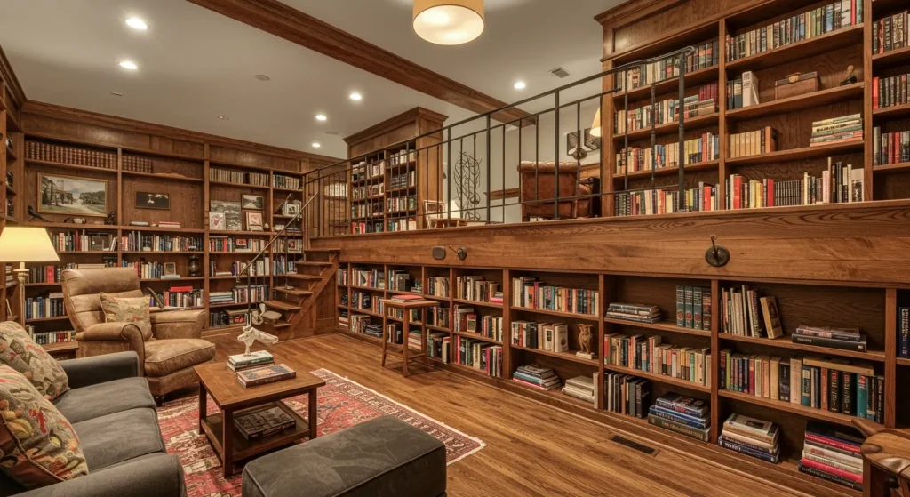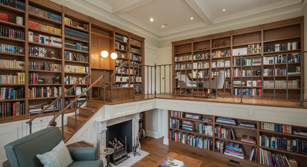 If you have high ceilings, consider creating a loft-style library with an elevated reading area. This unique design maximizes vertical space and adds architectural interest.