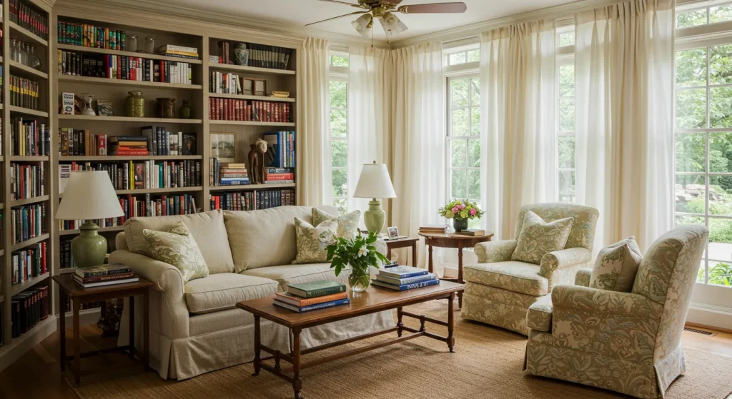 A sunroom filled with books allows you to enjoy natural light while reading. Opt for light-colored furniture, sheer curtains, and large windows to enhance the airy feel.