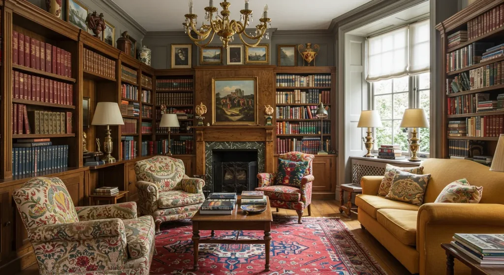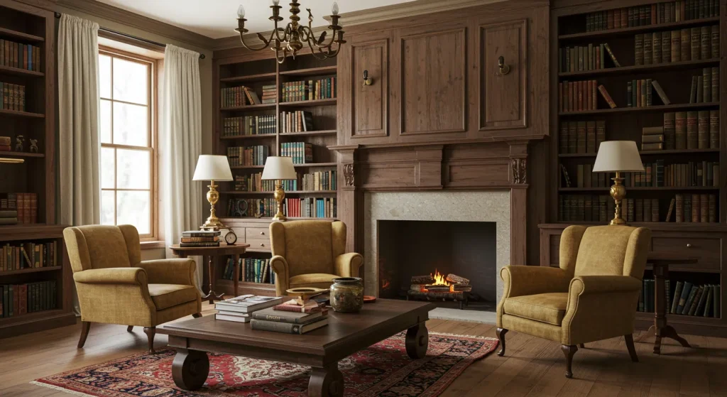 Incorporate antique furniture, ornate wooden bookshelves, and vintage lighting fixtures to create a classic, old-world charm reminiscent of historic libraries.