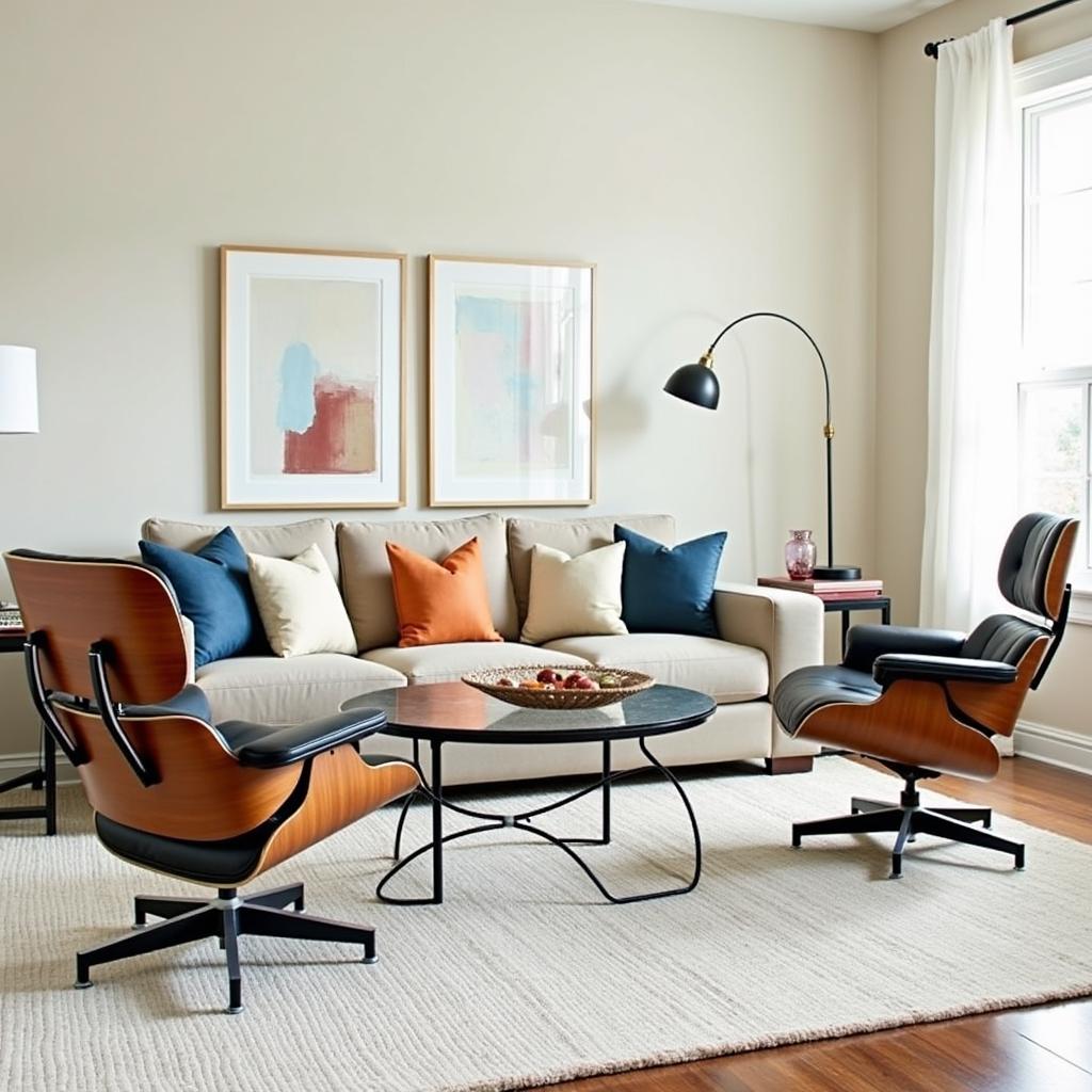 Choose one or two iconic mid-century modern furniture pieces, such as an Eames lounge chair, a Noguchi coffee table, or a Womb chair, to anchor the design.