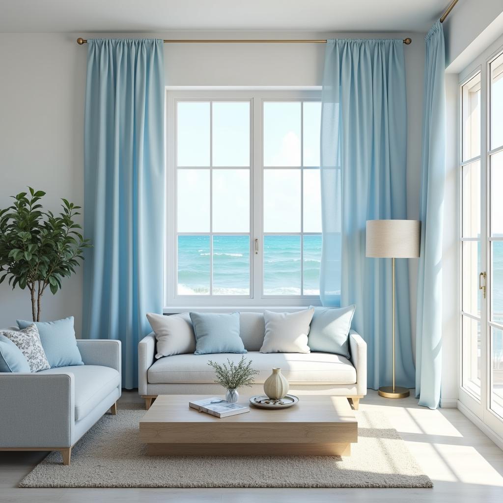 Use a color palette of soft blues, crisp whites, and sandy neutrals to evoke a relaxing, beachy feel within your home. These colors are directly inspired by the coastal landscape, reminding you of the ocean, sky, and sand, which helps to create a serene and airy ambiance.