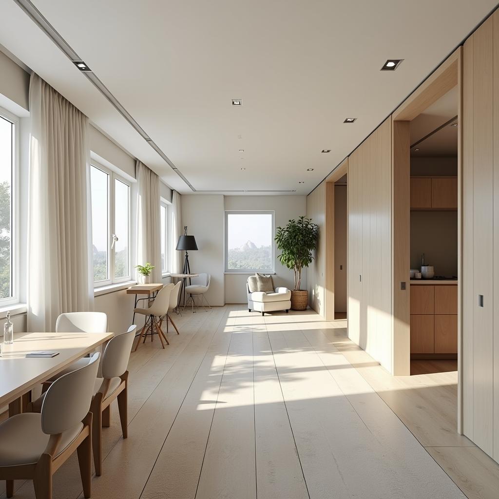 Create an open, free-flowing layout by removing unnecessary walls to give the space a modern, spacious, and connected feel. This architectural choice is a hallmark of contemporary living, promoting sociability and allowing light to travel freely throughout the home.