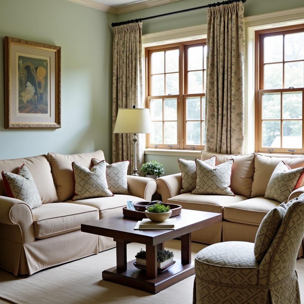Opt for classic patterned fabrics such as floral, damask, or plaid for upholstery, curtains, and throw pillows to add depth, color, and style.