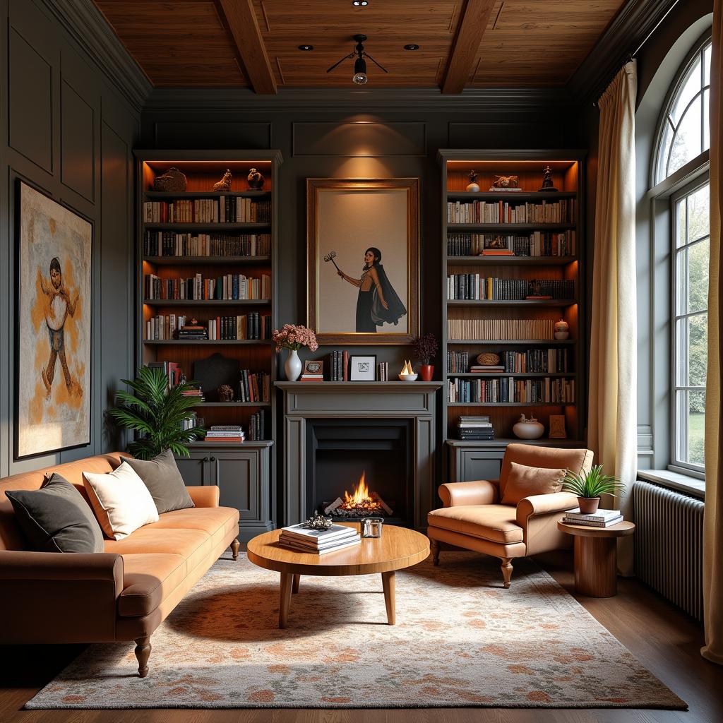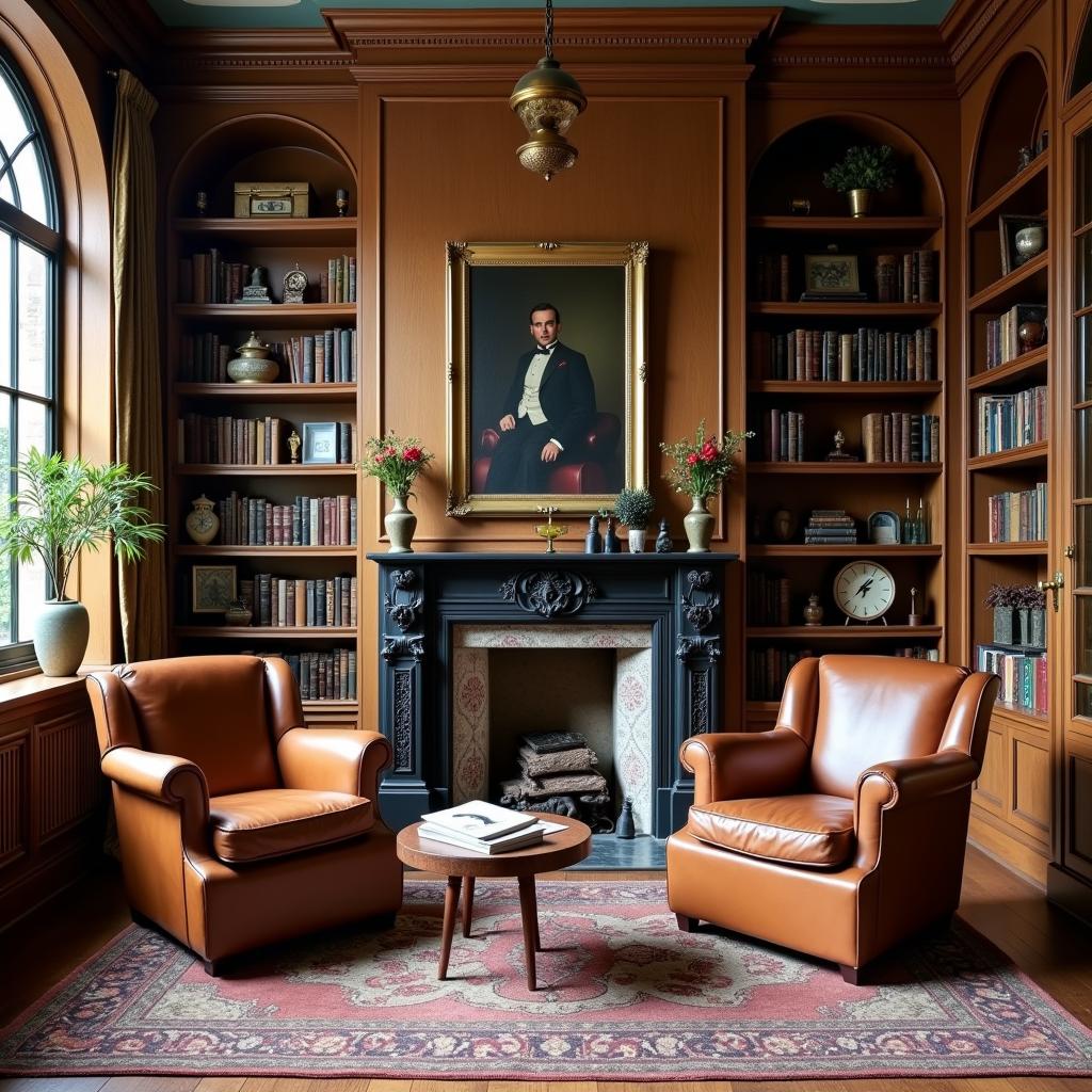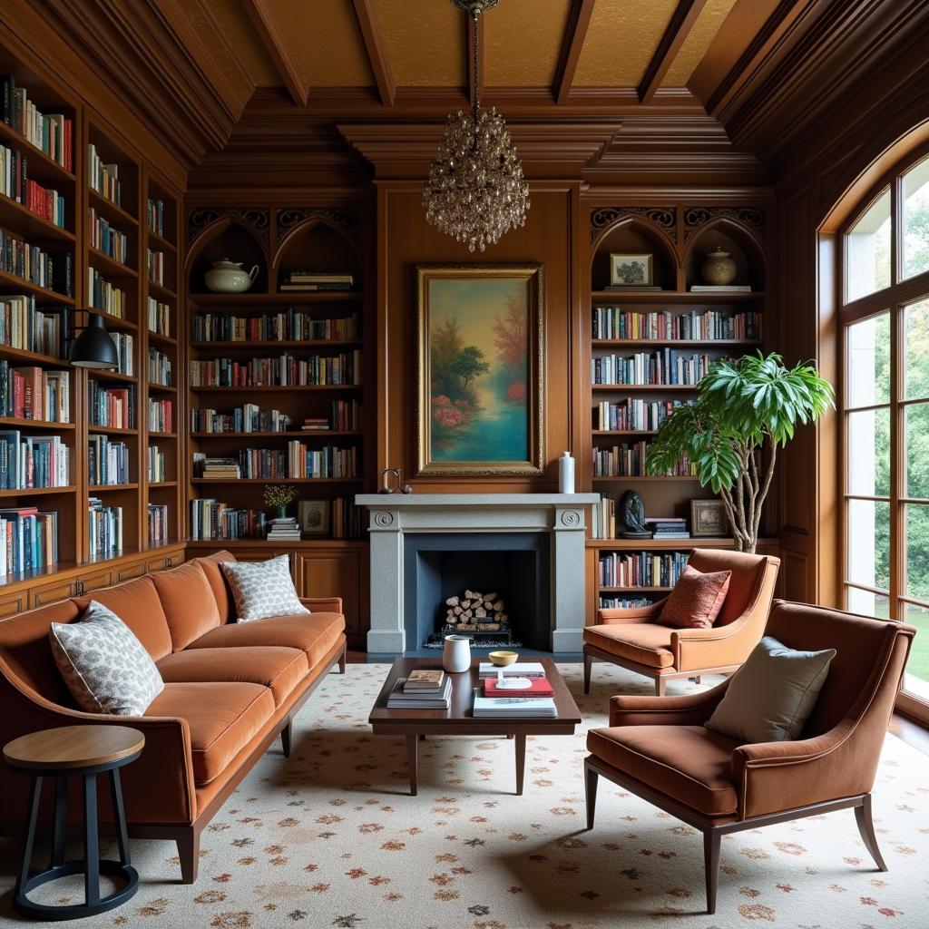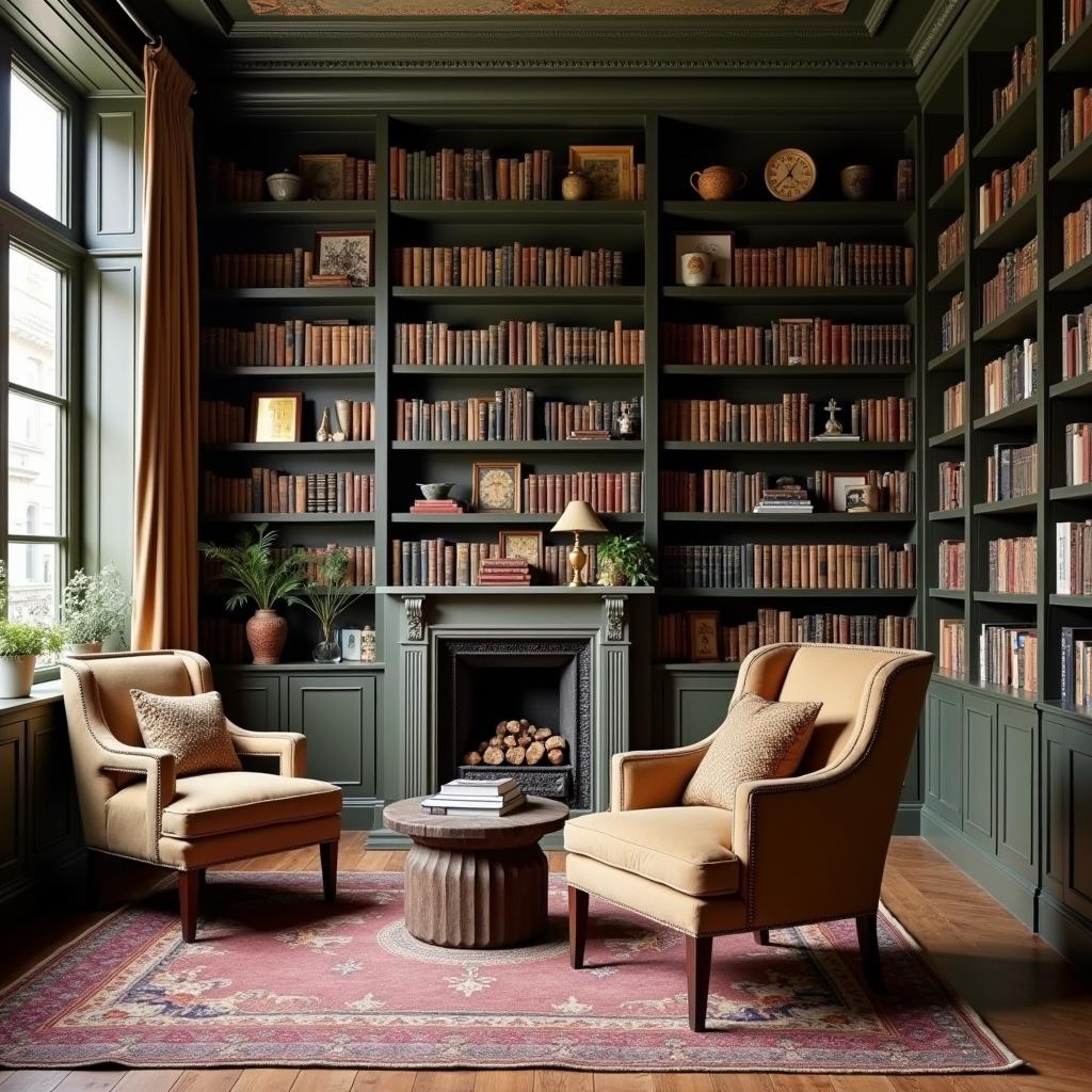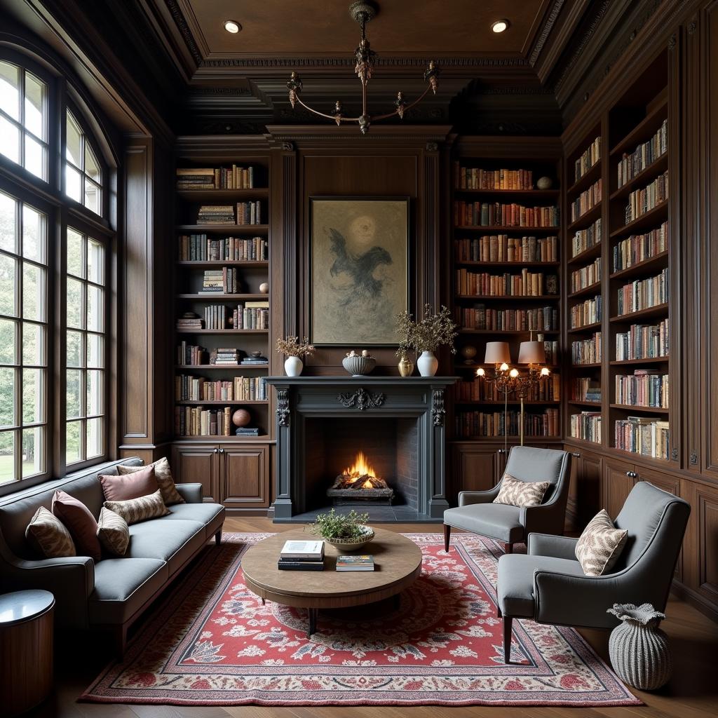 - Incorporate dark wood bookshelves, heavy curtains, and antique furniture.