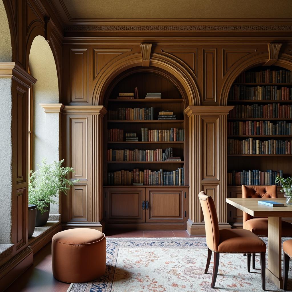 Add a touch of grandeur to your home library with arched doorways. The elegant curves and open design of an archway can help create a more inviting and spacious feel.