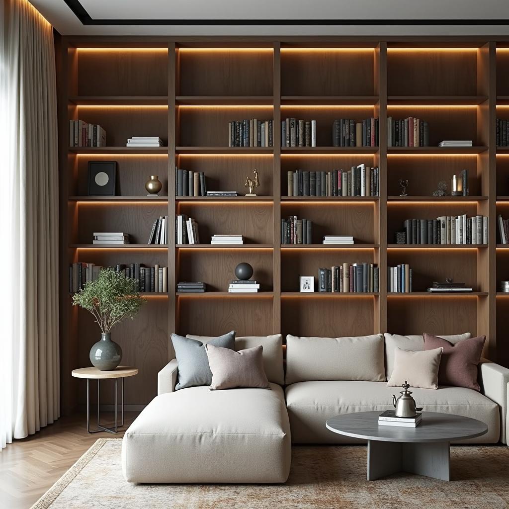 - Opt for a low-profile bookshelf with clean lines and minimal ornamentation.