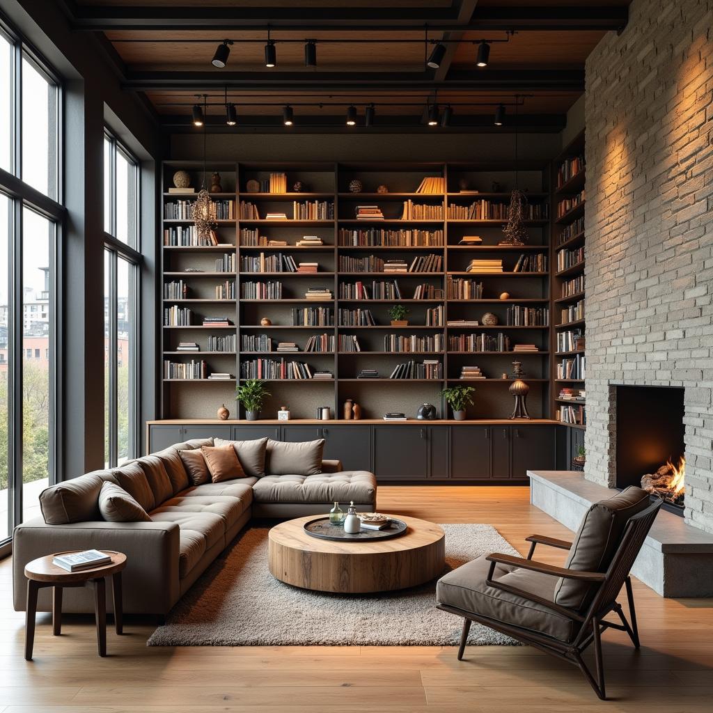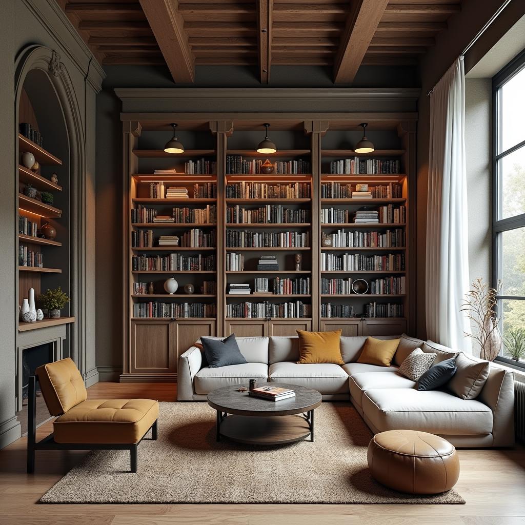 Industrial design elements such as exposed metal, brick, and reclaimed wood work beautifully in a home library. This style creates a bold, urban feel with a touch of sophistication.