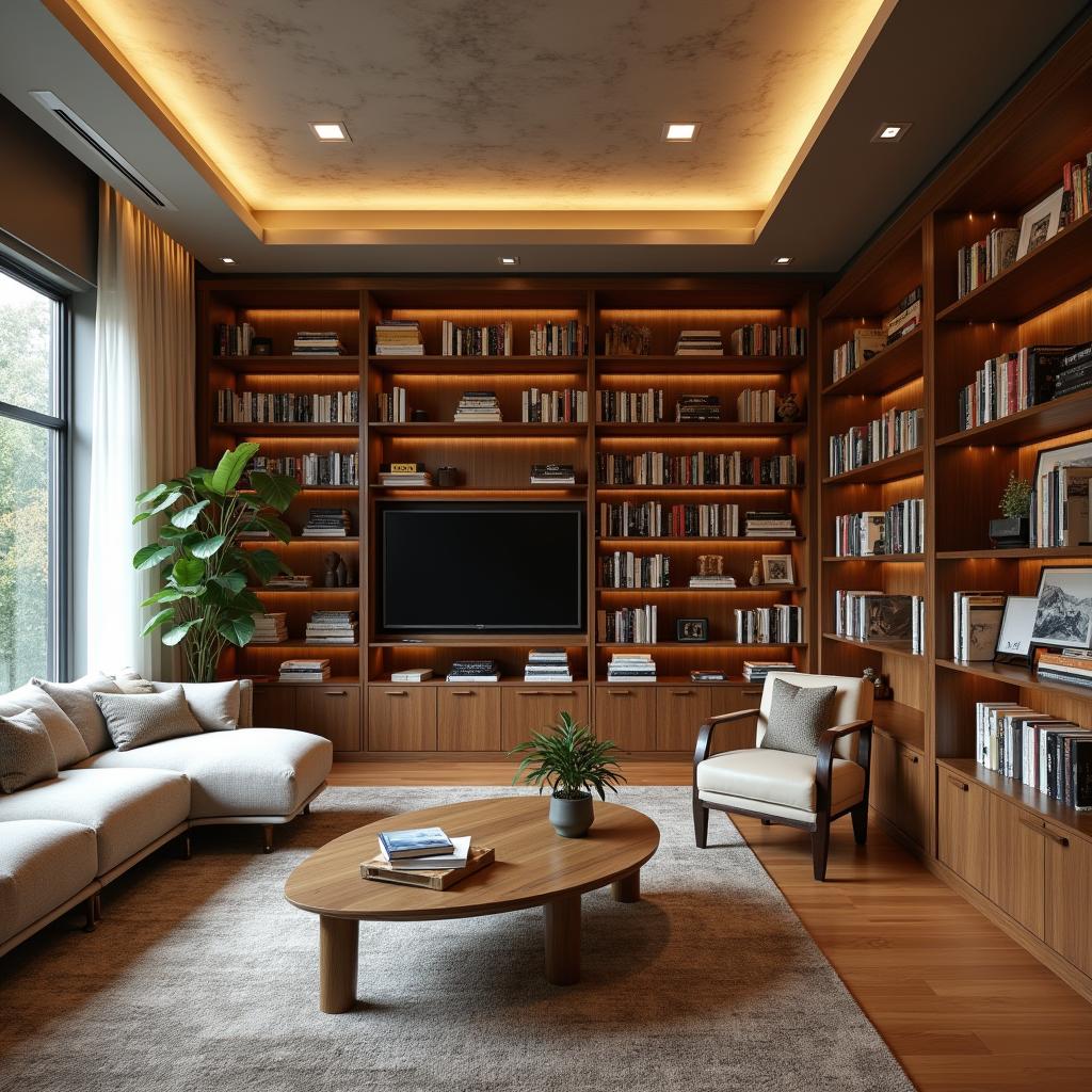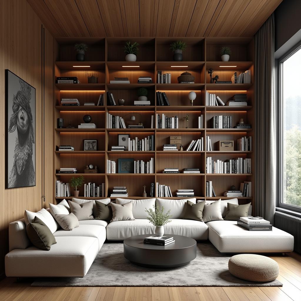 A minimalist Scandinavian library emphasizes clean lines, light wood, and neutral colors. It’s perfect for those who appreciate simplicity and functionality.