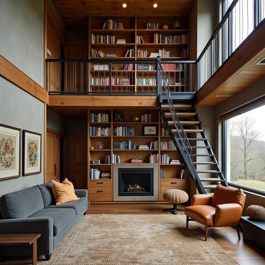 If you have a staircase with extra space, turn it into a reading loft. Build a small platform or nook above the stairs, complete with cushions and bookshelves below.
