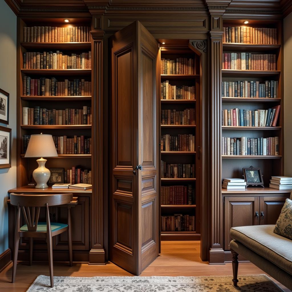 A secret bookcase door can add a whimsical touch to your home library. It’s a fun way to hide a room or create an air of mystery in your reading space.