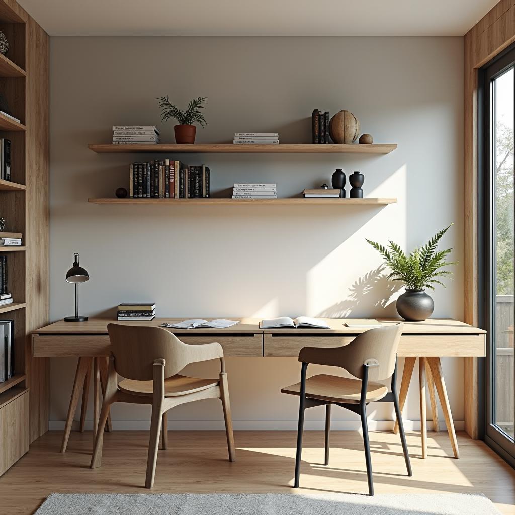 In a library, a wall-mounted floating desk can offer both workspace and storage. It gives you a spot to read, write, or research while maintaining an uncluttered look.