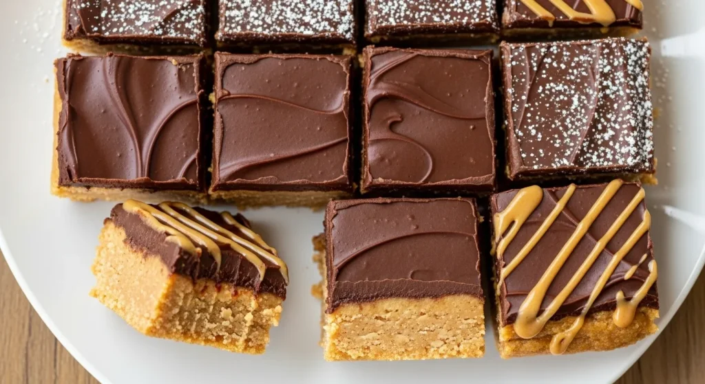 A creamy, sweet peanut butter and graham cracker base is topped with a simple yet rich chocolate ganache. They’re a guaranteed hit, tasting like a gourmet peanut butter cup.