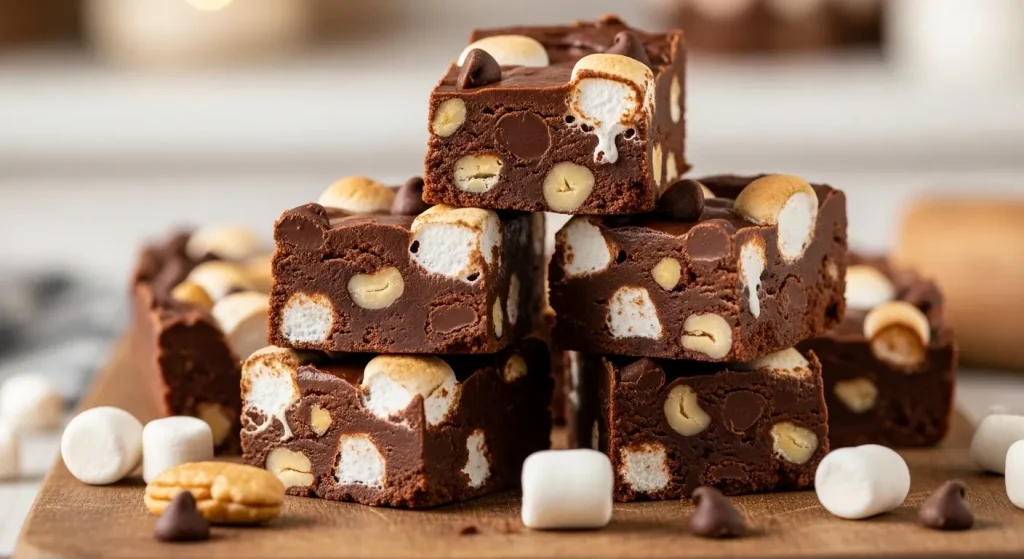 This no-bake fudge captures the classic ice cream flavor by mixing melted chocolate and sweetened condensed milk with mini marshmallows and chopped nuts.