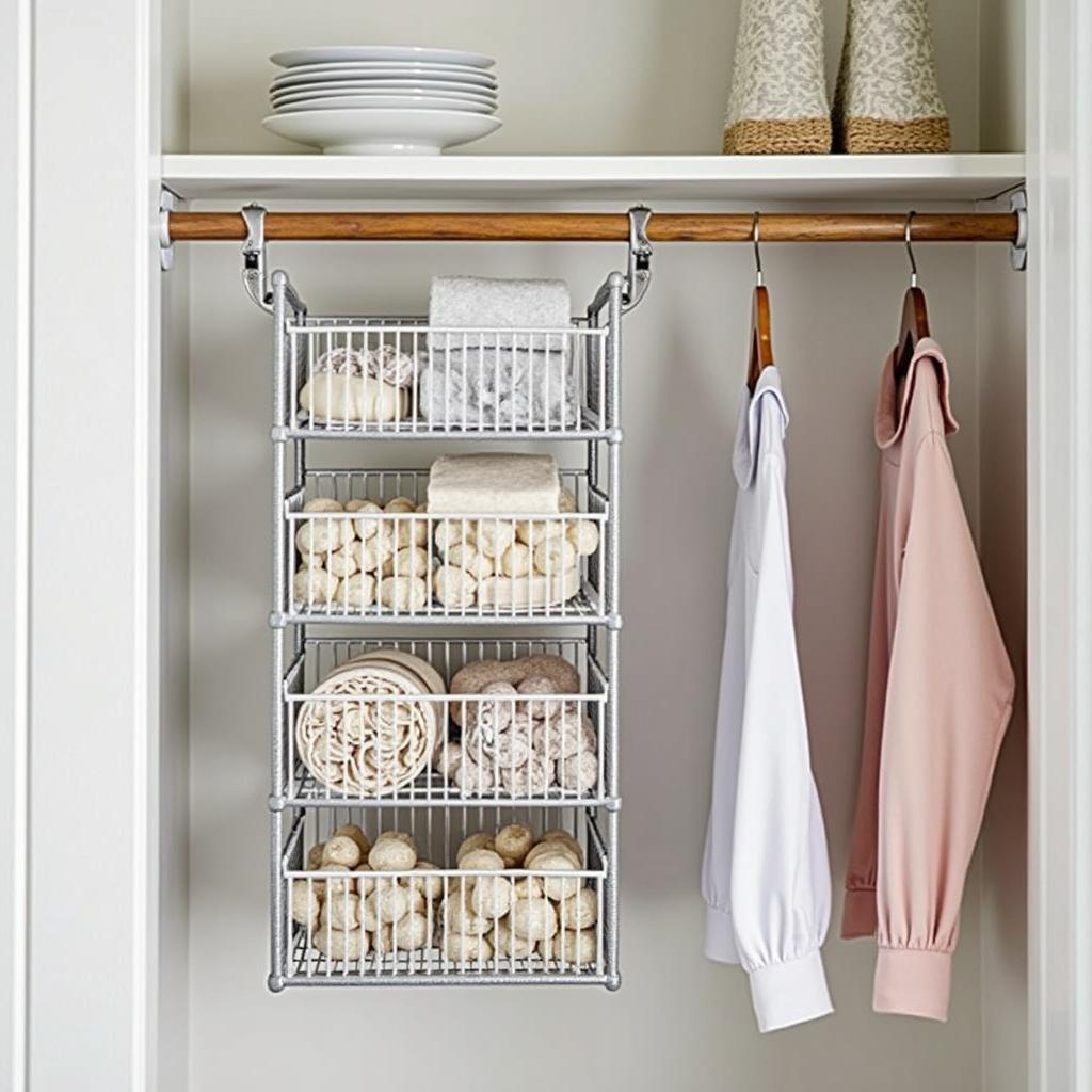 - Choose the right material for the job: wire for pantries, wicker for living rooms, and fabric for bedrooms.