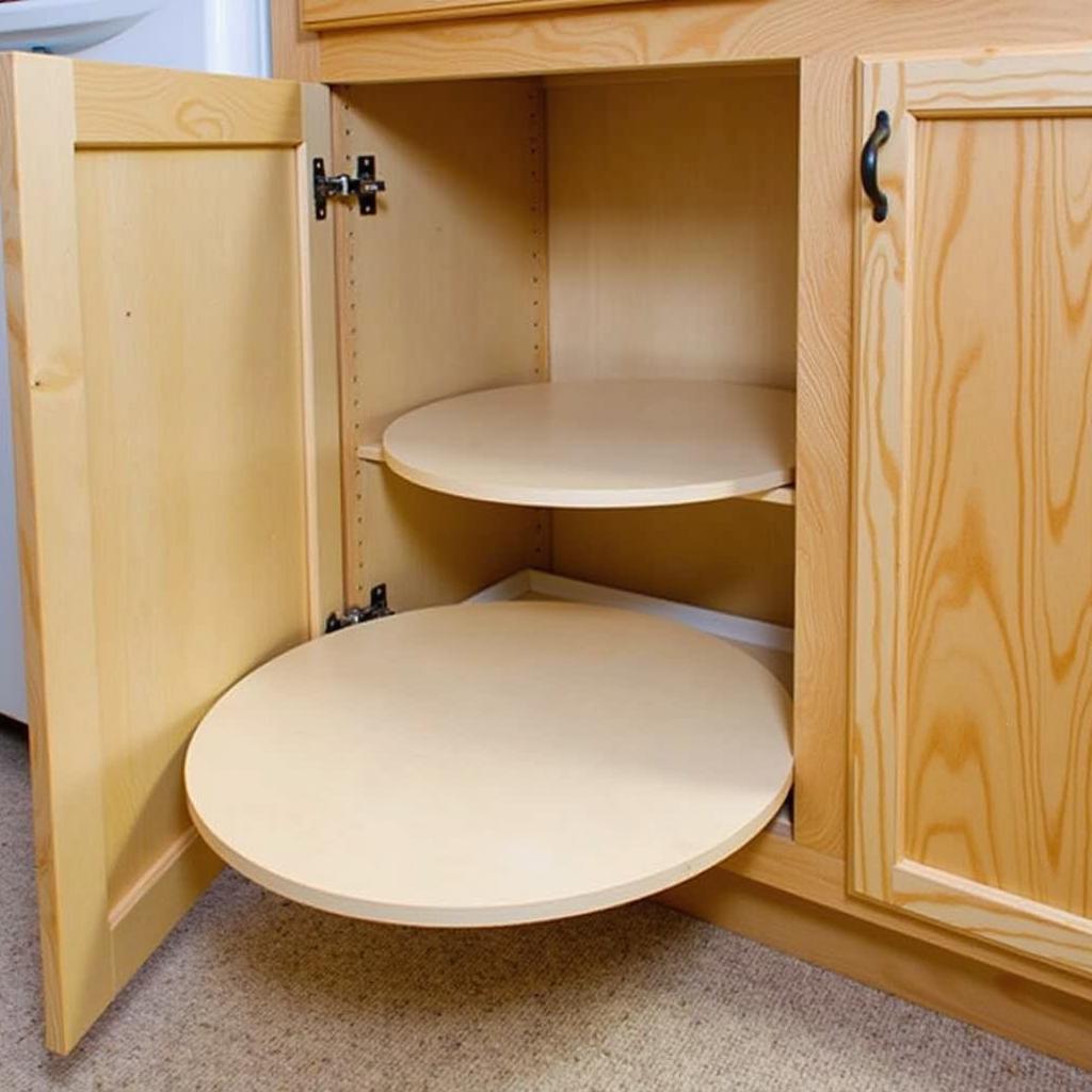 - Use a two-tiered lazy Susan to double the storage capacity in a tall cabinet.