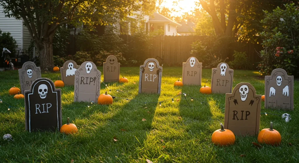 Turn your front lawn into a creepy cemetery with custom tombstones that cost almost nothing.