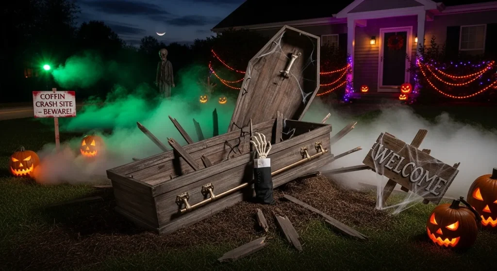 Make it look like a coffin has been unearthed and crashed in your yard.