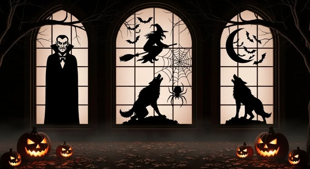 - Cut out spooky shapes like a monster, a zombie, or a mad scientist from large sheets of black poster board.