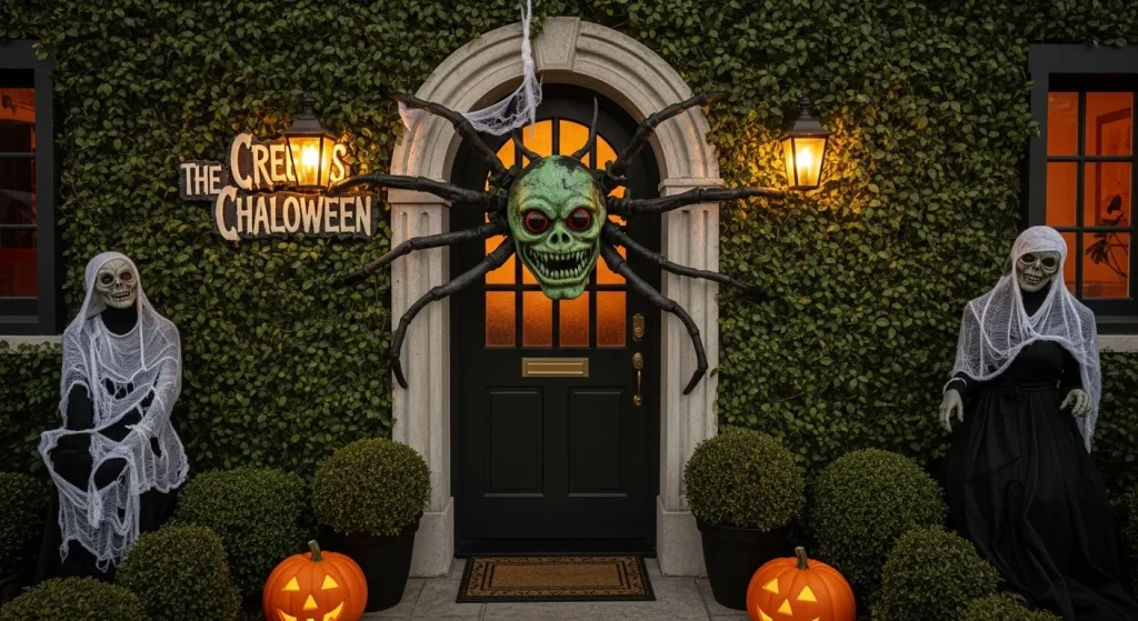 Make your front door a memorable and slightly terrifying experience by covering the entrance with creepy crawlies.