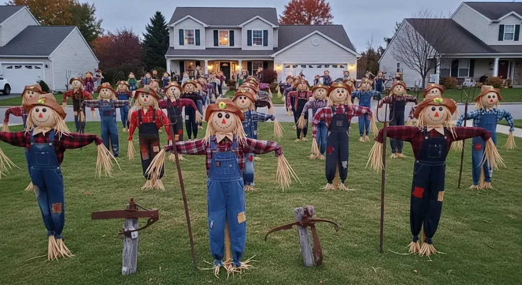 Instead of one friendly scarecrow, create an army of them. This turns a charming classic into something much more ominous and threatening.