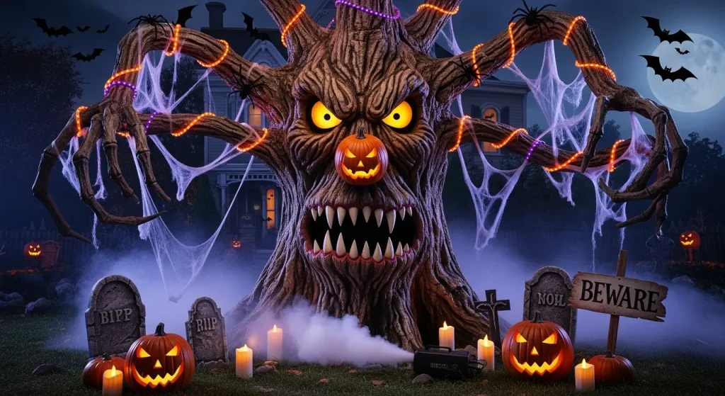 This look is all about making your plants and trees part of the scare, as if the garden itself is coming alive.