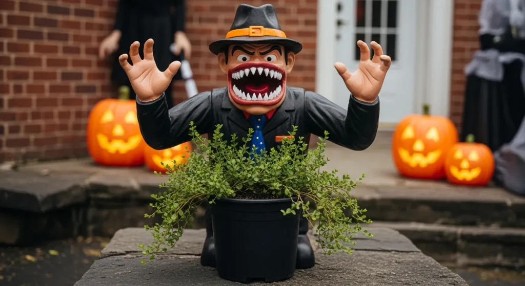Transform a large planter into a terrifying creature from a horror movie, as if it sprouted right from your garden soil.