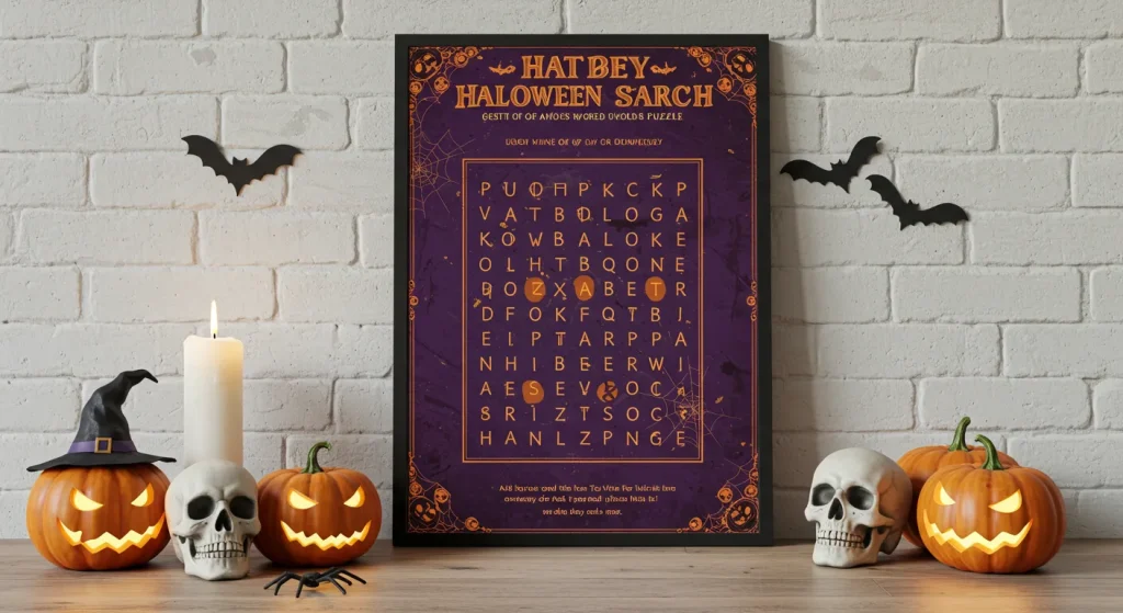 - Look for a design with a fun, chunky font and classic Halloween colors like orange, black, and purple.