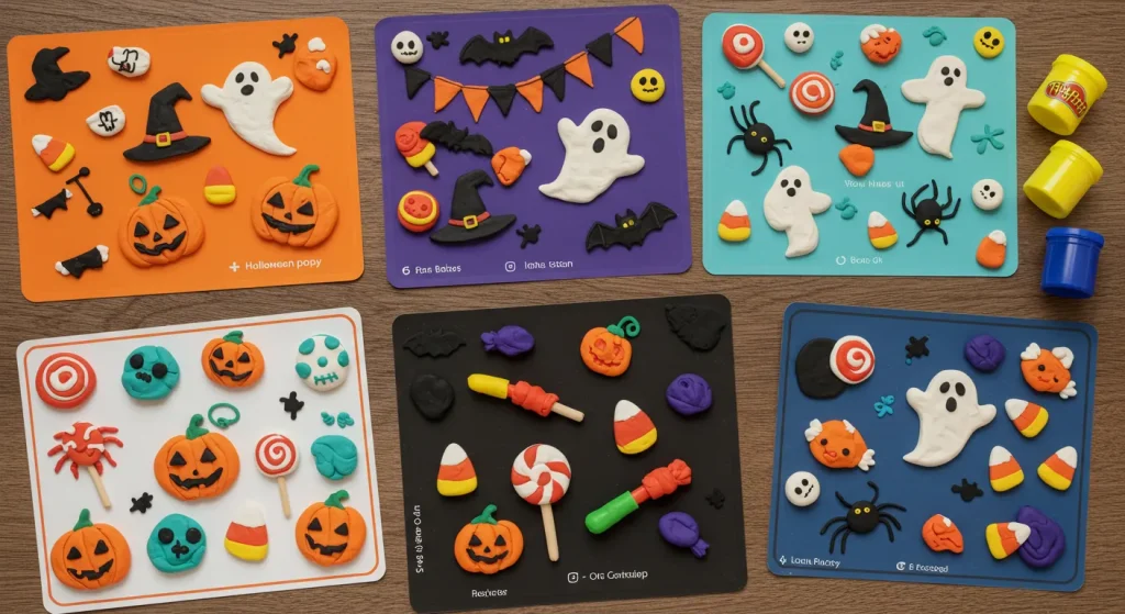 - The mats can have prompts like “Give the spider 8 legs” or “Decorate the jack o lantern.”