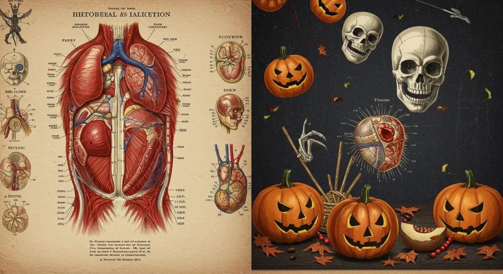 Add a touch of sophisticated horror with printable vintage anatomical illustrations of skulls, skeletons, and hearts.