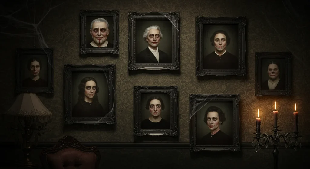 - Frame them in old, mismatched frames for an authentic haunted mansion feel.