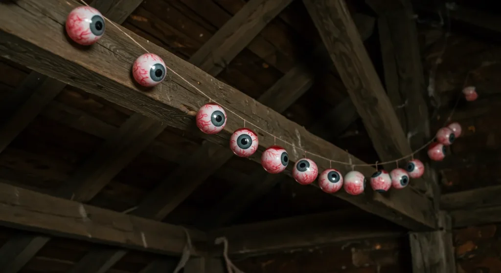 - String the eyeballs together with a piece of red yarn to look like a bloody vein.