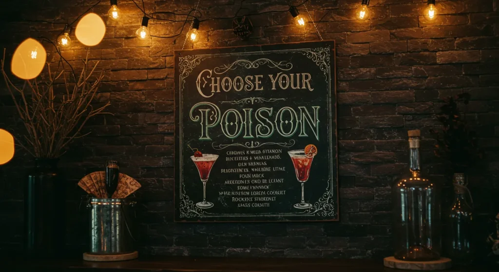 - Search for “free ‘Choose Your Poison’ printable sign.”