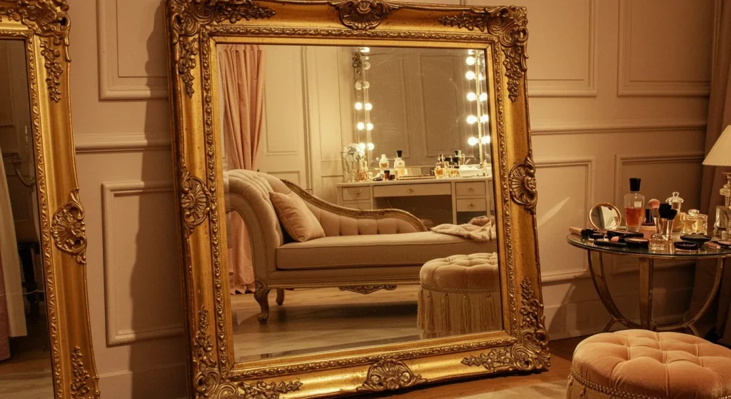 - Lean a full-length floor mirror with an ornate, vintage-style gold frame against a wall for a touch of Parisian chic.