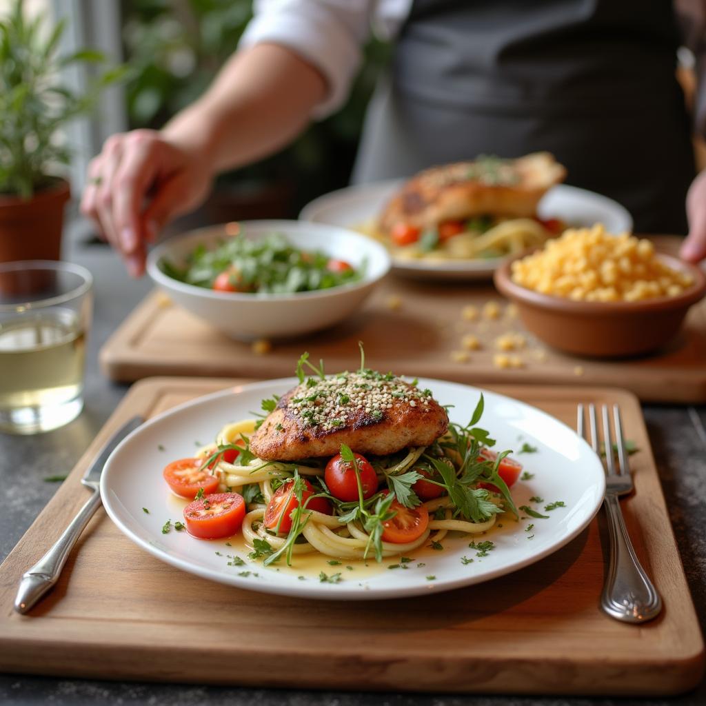 - Prepare a full three course meal with an appetizer, main course, and dessert.
