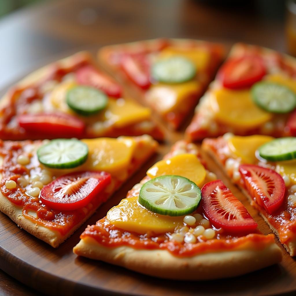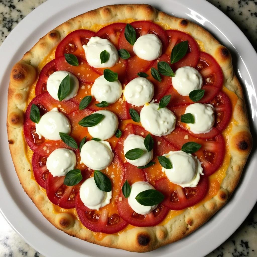 Inspired by the classic Caprese salad, this pizza features fresh tomatoes, mozzarella, basil, and a balsamic glaze drizzle.
