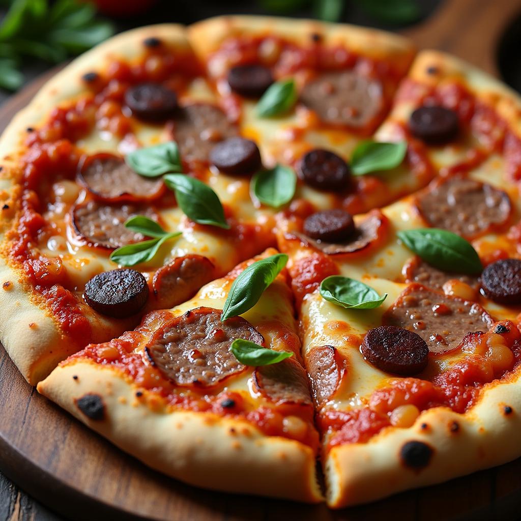 For the carnivores, this pizza is loaded with pepperoni, sausage, bacon, and ham for a hearty meal.