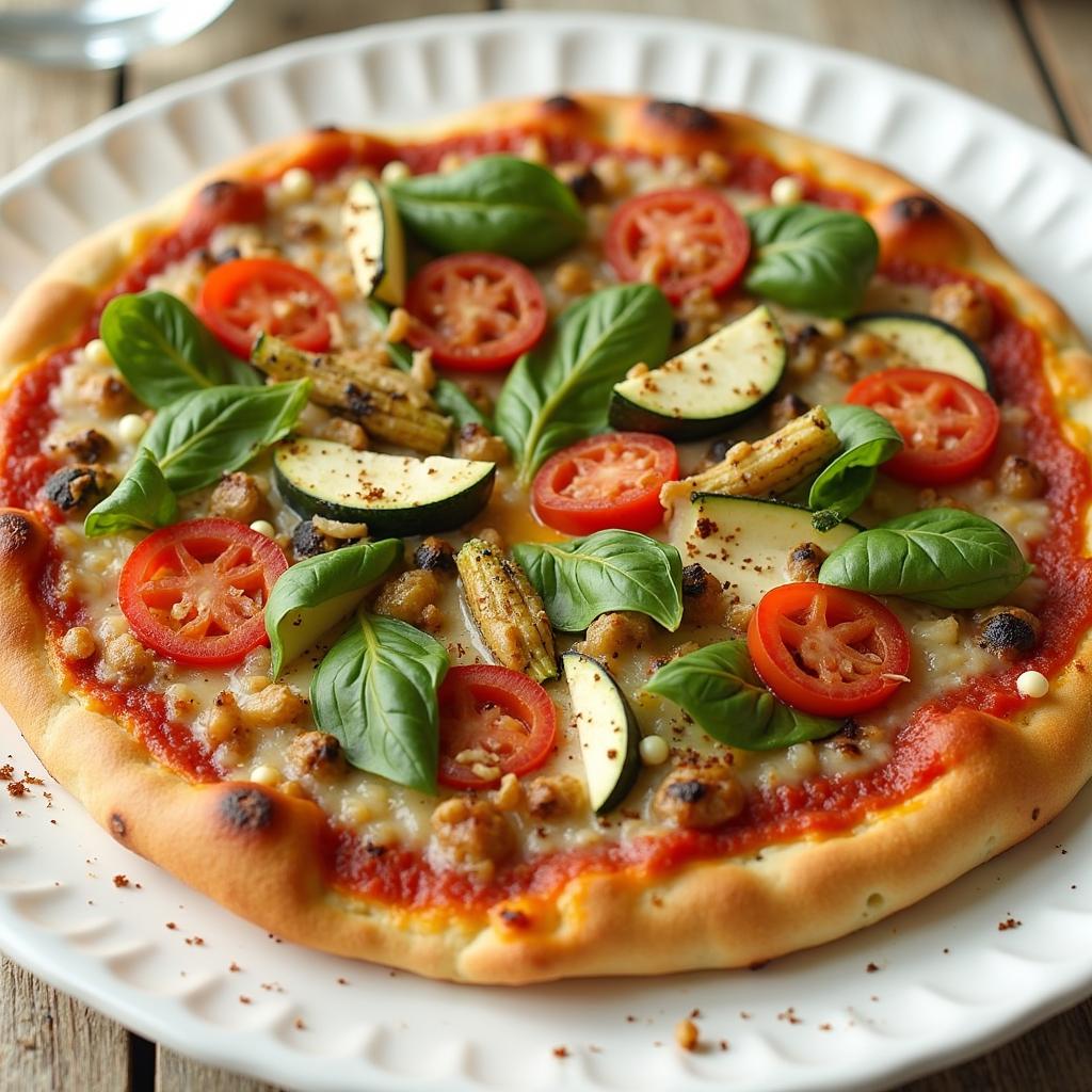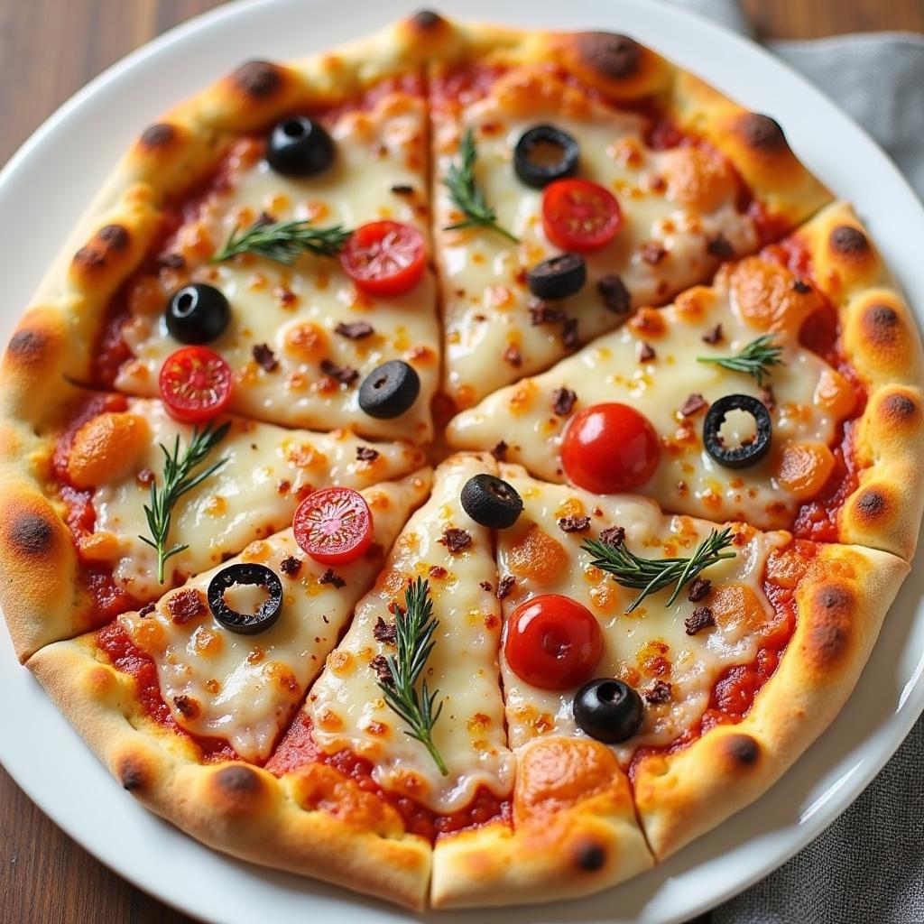 Packed with fresh vegetables like bell peppers, onions, olives, and spinach, this veggie pizza is a healthy yet satisfying choice.