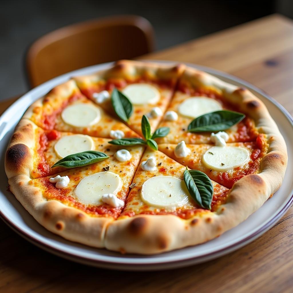 A timeless favorite, the Margherita pizza is simple yet delicious with fresh tomatoes, mozzarella, basil, and a hint of olive oil.